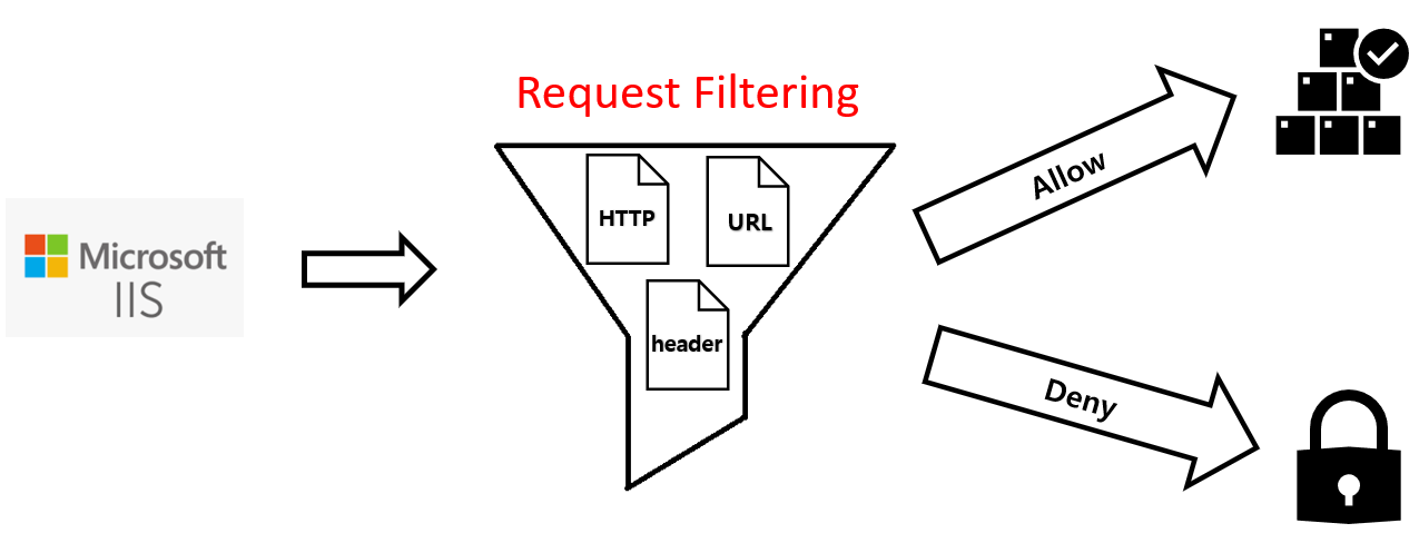 요청 필터링은(Request Firtering)은 IIS의 웹사이트에서 특정 URL, 특정 확장자, HTTP 헤더길이 등등을 통해 사용자가 접근하여 동작을 제한하는데 사용되는 IIS 의 보안 기능 입니다.