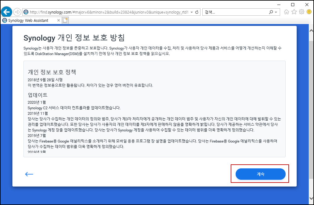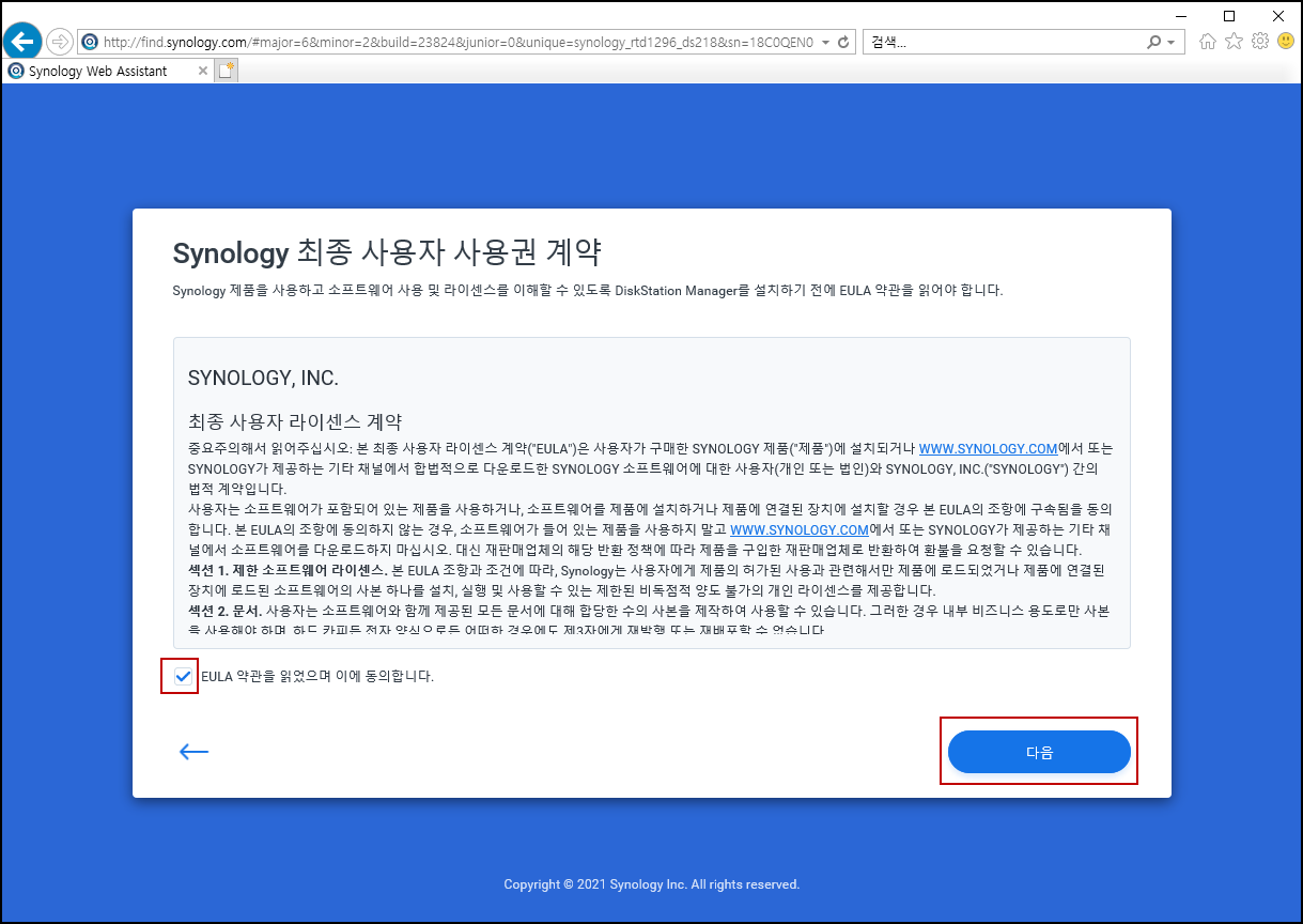 3. Synology NAS 약관 동의