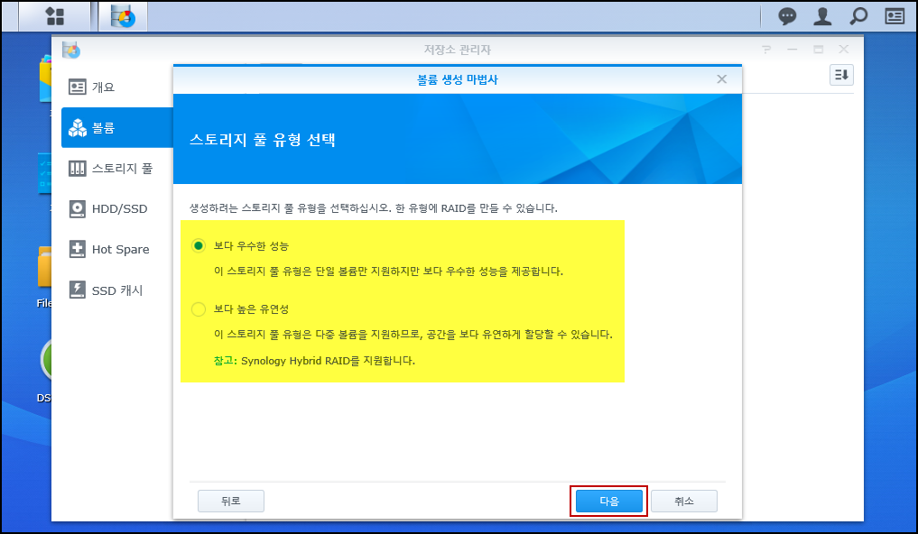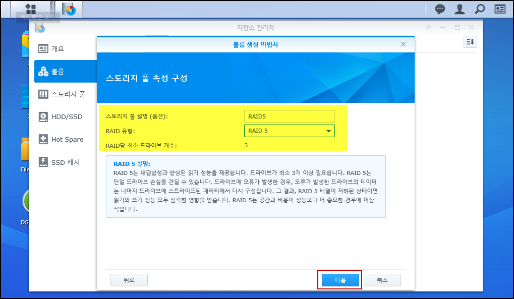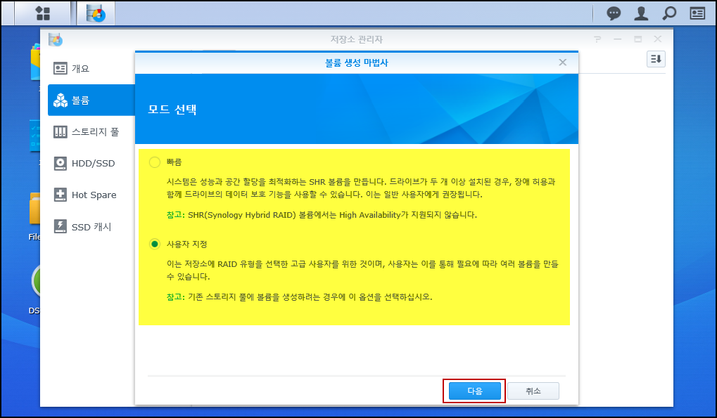 빠름 : Synology에서 제공하는 SHR이라는 전용 레이드 구성 입니다