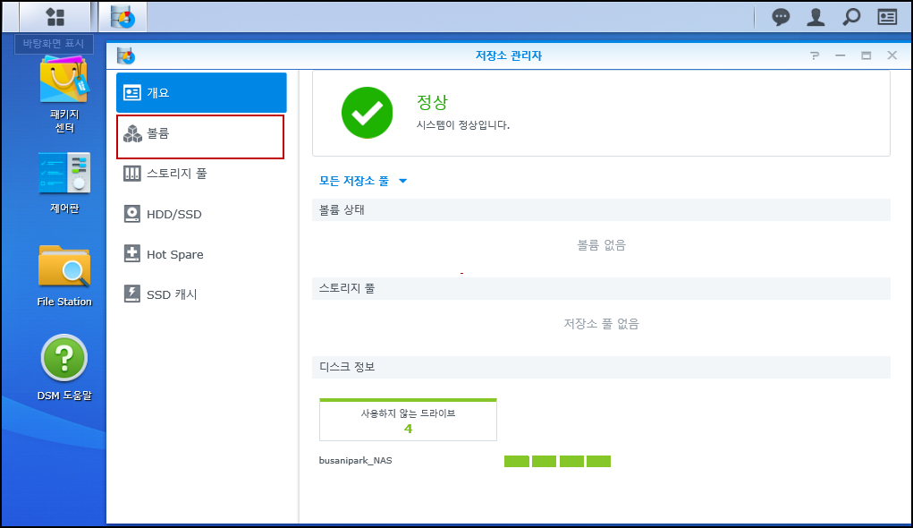 저장소 관리자에서 좌측 볼륨을 선택합니다.