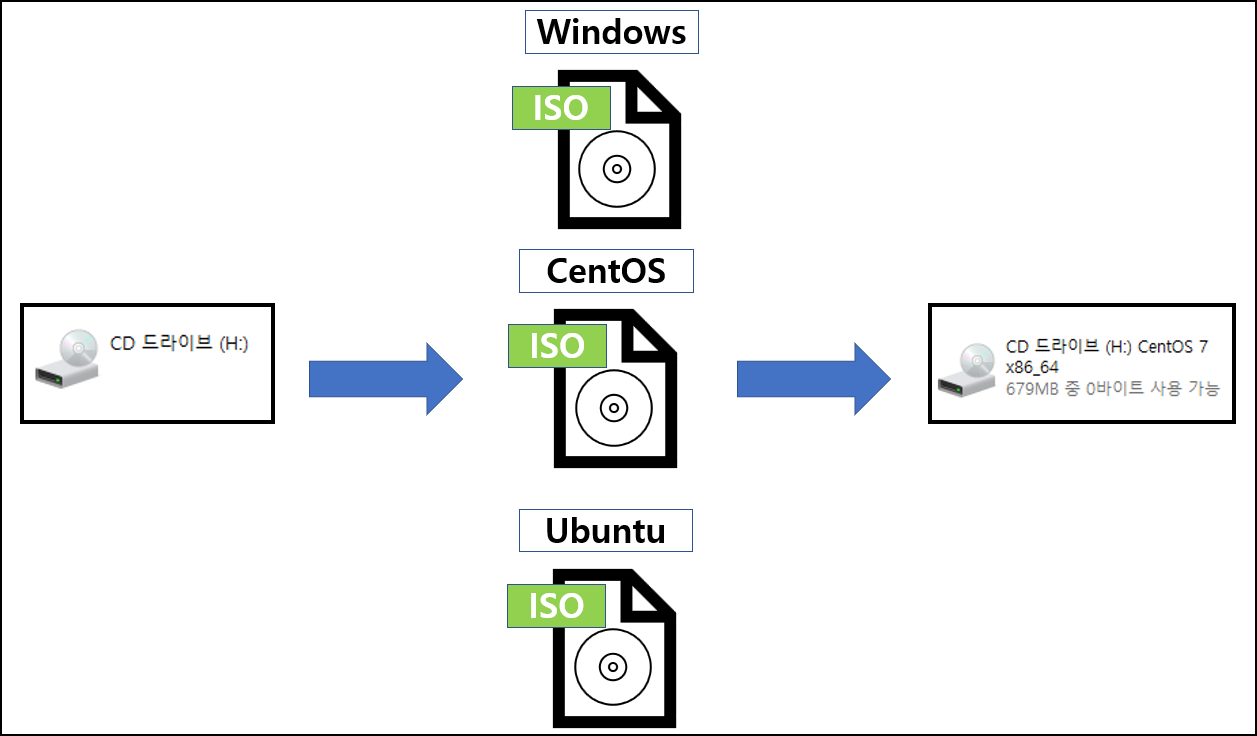 ISO 파일이 생기면서 ODD(CD-ROM)이 없어도 ISO 파일을 가상드라이브로 인식하여 CD를 실행 및 설치를 할 수 있게됩니다.