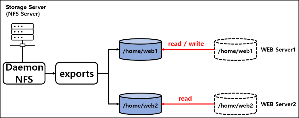 NFS Server는 파일에 공유할 때 권한 설정, 파일 설정 등등 기능이 있습니다