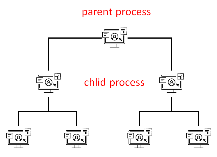 프로세스는 크게 부모 프로세스와 자식 프로세스로 나누며, 사용자가 새롭게 생성한 프로세스에 따라 실행된 프로세스의 관련되어 있는 프로세스를 자식 프로세스라고 합니다