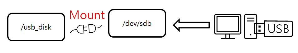 하지만 리눅스에서는 직접 연결한 물리적와 리눅스에 특정 디렉토리를 연결하여 사용해야 되는데 이때 외부 장치와 리눅스에 특정 디렉토리를 연결하는 것을 mount(마운트) 라고 합니다.