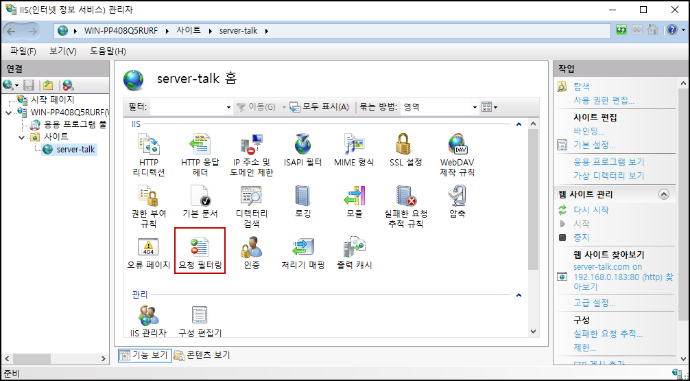 이번 포스팅에서는 IIS의 기본보안 기능인 요청 필터링(Request Filtering)에 대해서 알아보도록 하겠습니다.