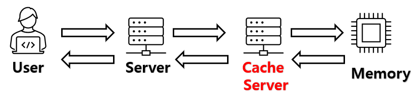이러한 문제를 해결하기 위해 고안된 방법이 하드디스크나 SSD에 데이터를 저장하지 않고 메모리에 저장했다가 같은 페이지의 요청이 있을때 메모리에 저장된 데이터를 돌려주며 빠른 속도의 처리가 가능하게 됩니다