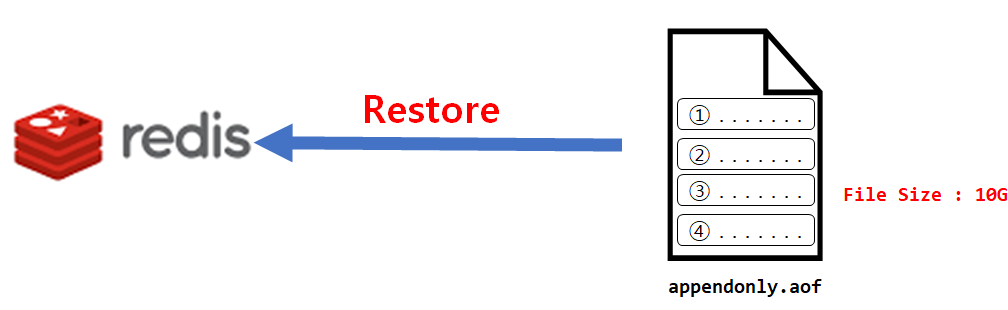 AOF 방식은 입력, 수정, 삭제의 명령을 실행 기록을 그대로 로그파일 기록하게 되므로 로그파일의 크기가 커서 데이터 복원 소요시간이 깁니다.