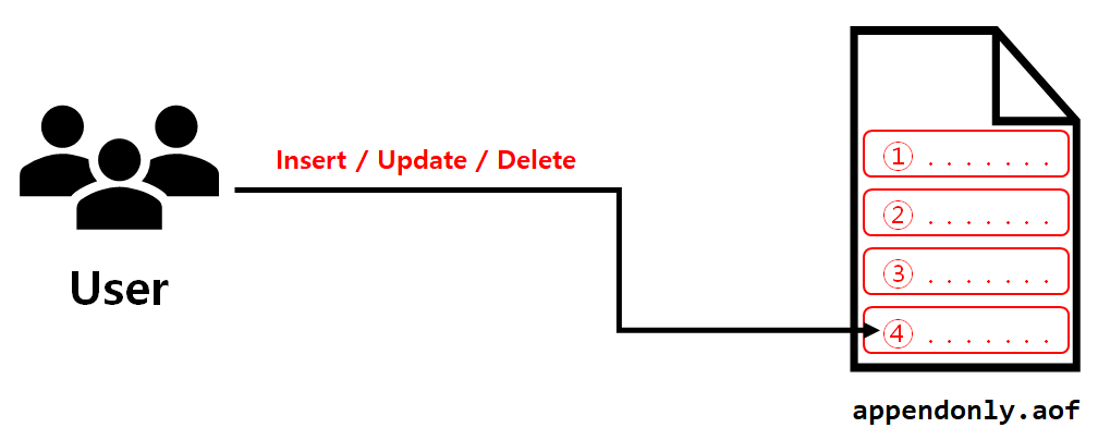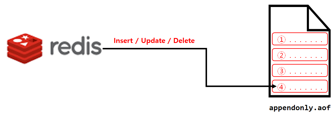 AOF 방식은 입력, 수정, 삭제의 명령을 실행 기록을 그대로 로그파일 하단에 저장하기 때문에 저장 속도도 빠르고 데이터 손실이 거의 없습니다.