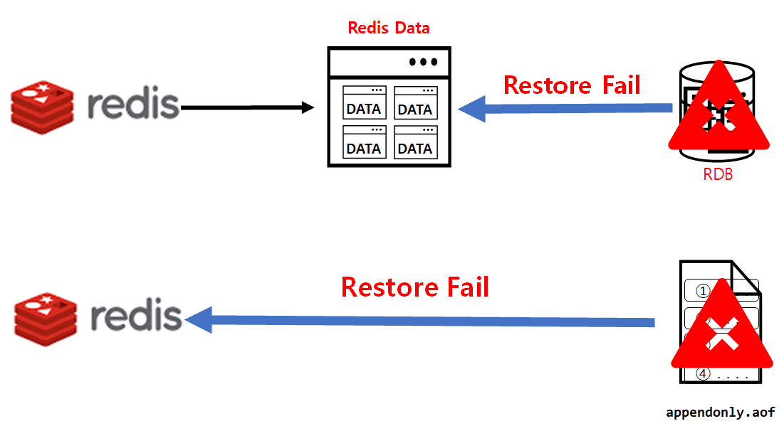 하지만 재시작이 안되거나 RDB, AOF 파일이 커서 복원하는데 오랜 시간이 걸리거나 데이터 백업파일에 문제가 있어 데이터를 복구하지 못하는 심각한 문제도 발생할 수 있습니다