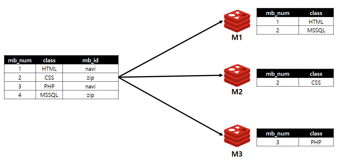 이러한 문제를 해결하기 위해 1개의 테이블의 데이터를 물리적으로 여러 파티션에 나누어 저장하고 조회, 저장, 삭제 등등 성능이 크게 향상되며, 이러한 기능을 수평적 파티셔닝(Horizontal Partitioning) 또는 샤딩(Sharding)이라고 합니다.
