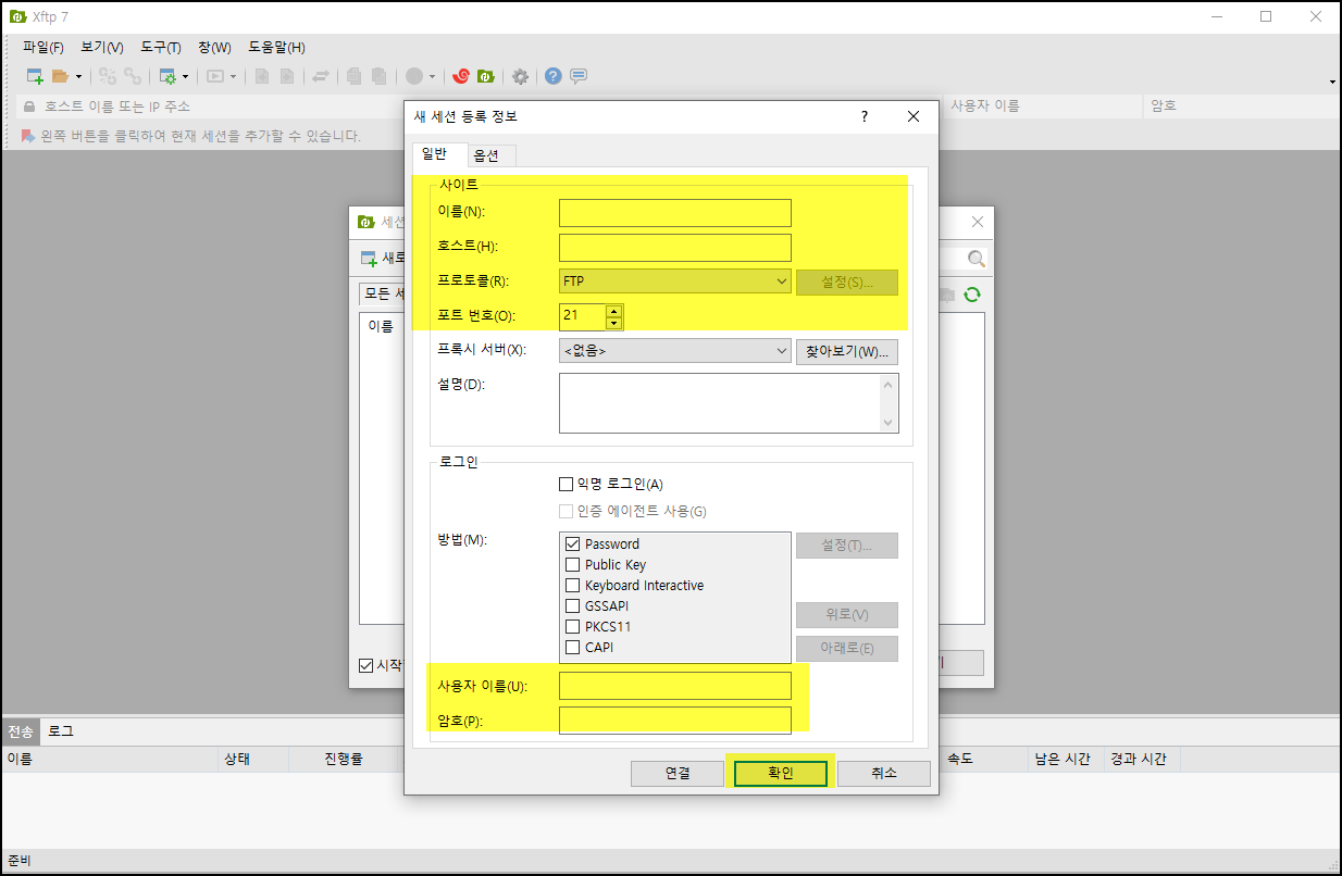 Netsarang - XFTP 세션 생성하기 - FTP 설정