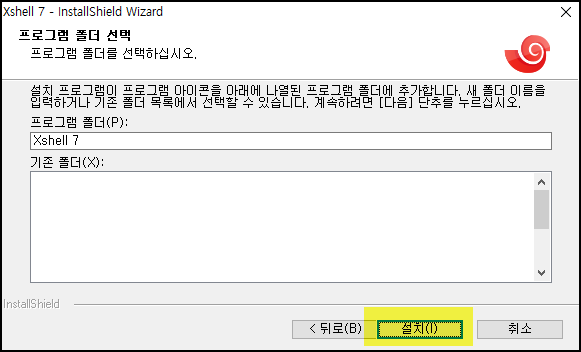 프로그램 폴더를 입력후 설치를 진행합니다.