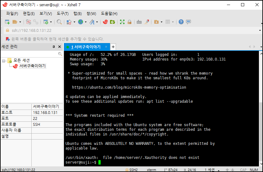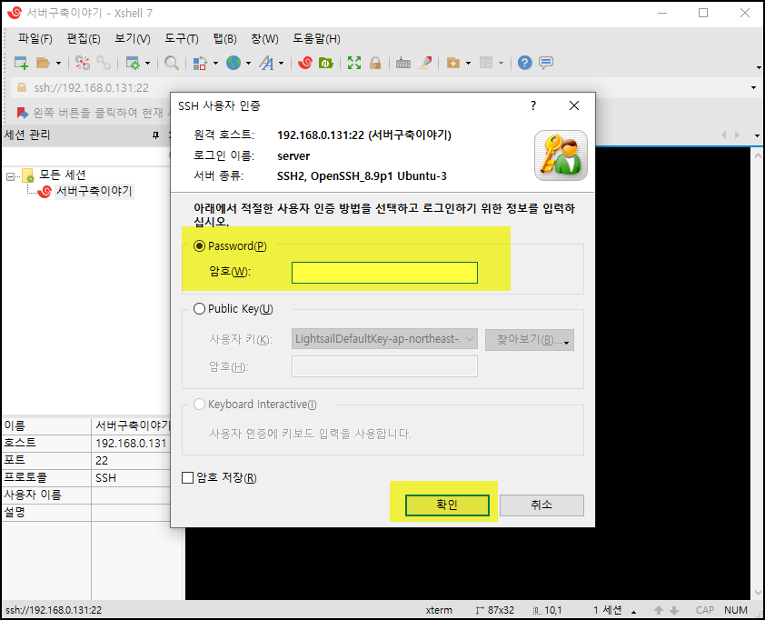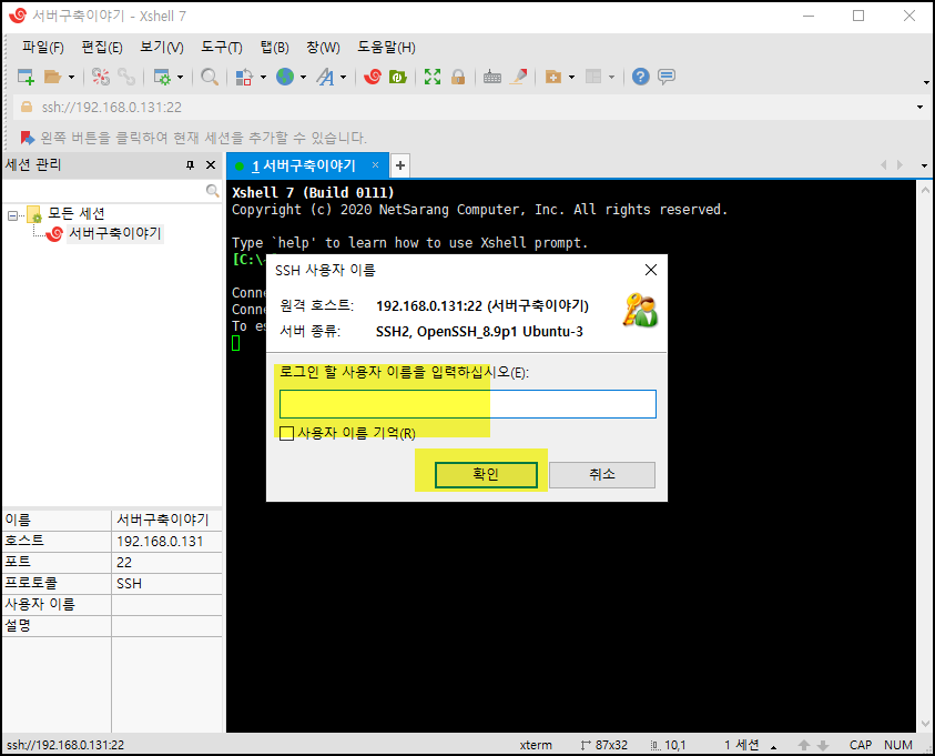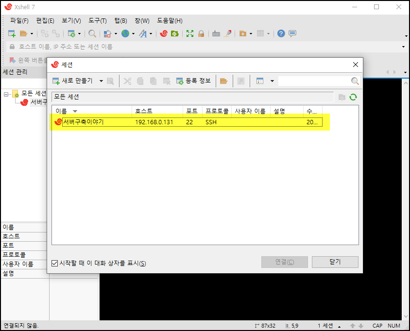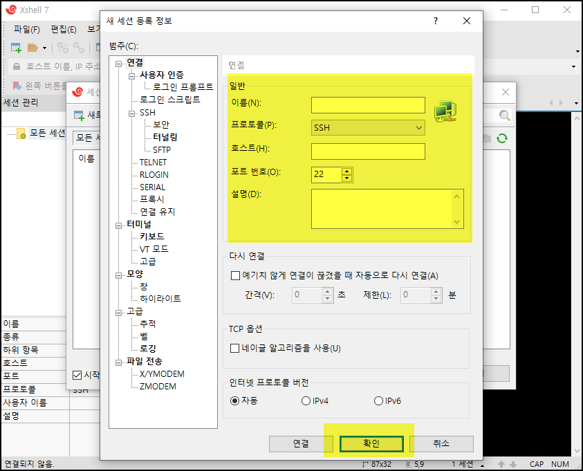 Netsarang - XSHELL 세션 생성하기 - SSH 설정