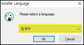 설치하실 언어를 지정하고 OK를 선택합니다.