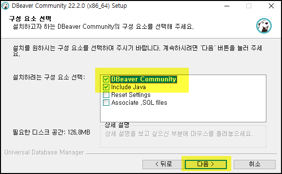 DBeaver 설치 안내페이지이며, 다음을 선택합니다.