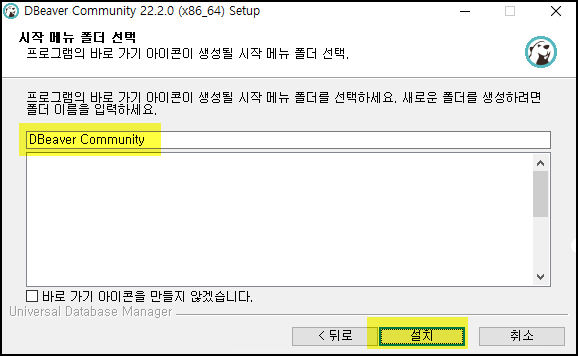 사용할 프로그램 이름을 지정후 설치를 진행합니다.