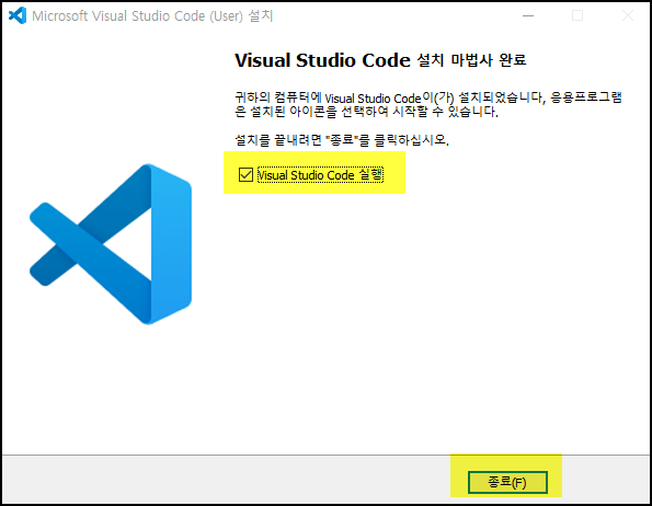설치가 모두 완료되었으며, 종료후 실행합니다.