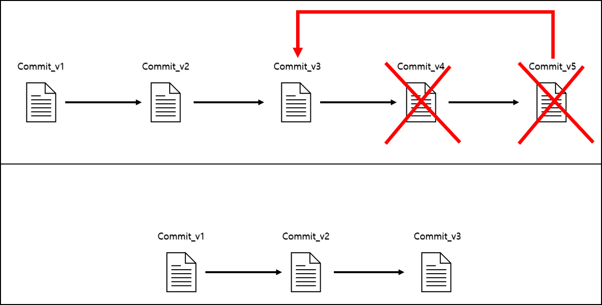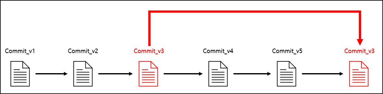 revert 는 1번에서 5번까지 있는 Commit에서 3번의 Commit의 내용으로 변경할때 새로운 Commit 버전을 생성하고 3번의 Commit 버전으로 변경되게 됩니다.